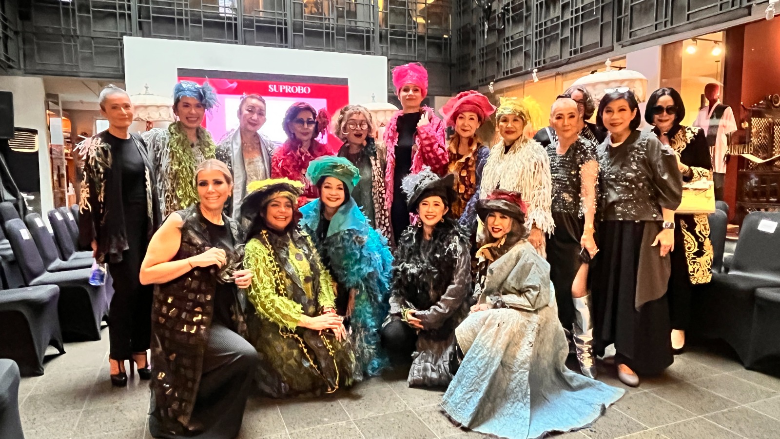 吉田氏は、型破りな素材を身に着けられるアートに変える大胆な手法で国際的に知られる。本イベントは、ジャカルタ国際婦人クラブ(WIC)元会長のリタ・プスポネゴロ氏が企画した。各国大使の配偶者らがモデルを務め、WICの社会福祉活動のための資金調達を目的とした。