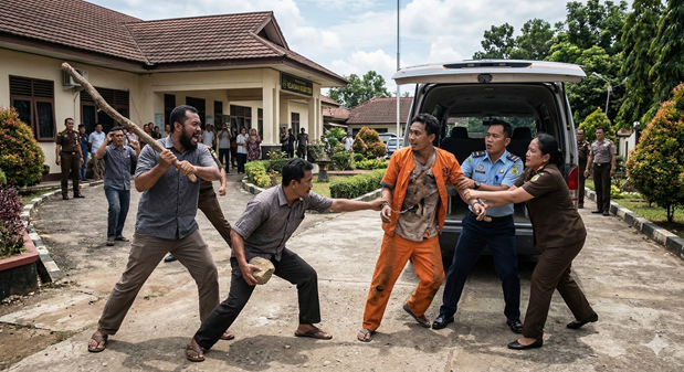 ジャンビ州のテボ地方検察庁において、裁判を終えたばかりの囚人が自身の家族によって連れ去られるという前代未聞の事件が発生した。公判終了後、施設へ護送される途中の囚人を狙い、待ち伏せしていた家族らが突如として護送職員を襲撃した。犯行グループは周囲にあった木や石を凶器として使用し、職員らに暴行を加えたうえで囚人を奪取し、逃走した。白昼堂々と行われたこの奇抜な犯罪は、地域の司法・法執行機関の警備体制に重大な疑問を投げかけるものとなった。