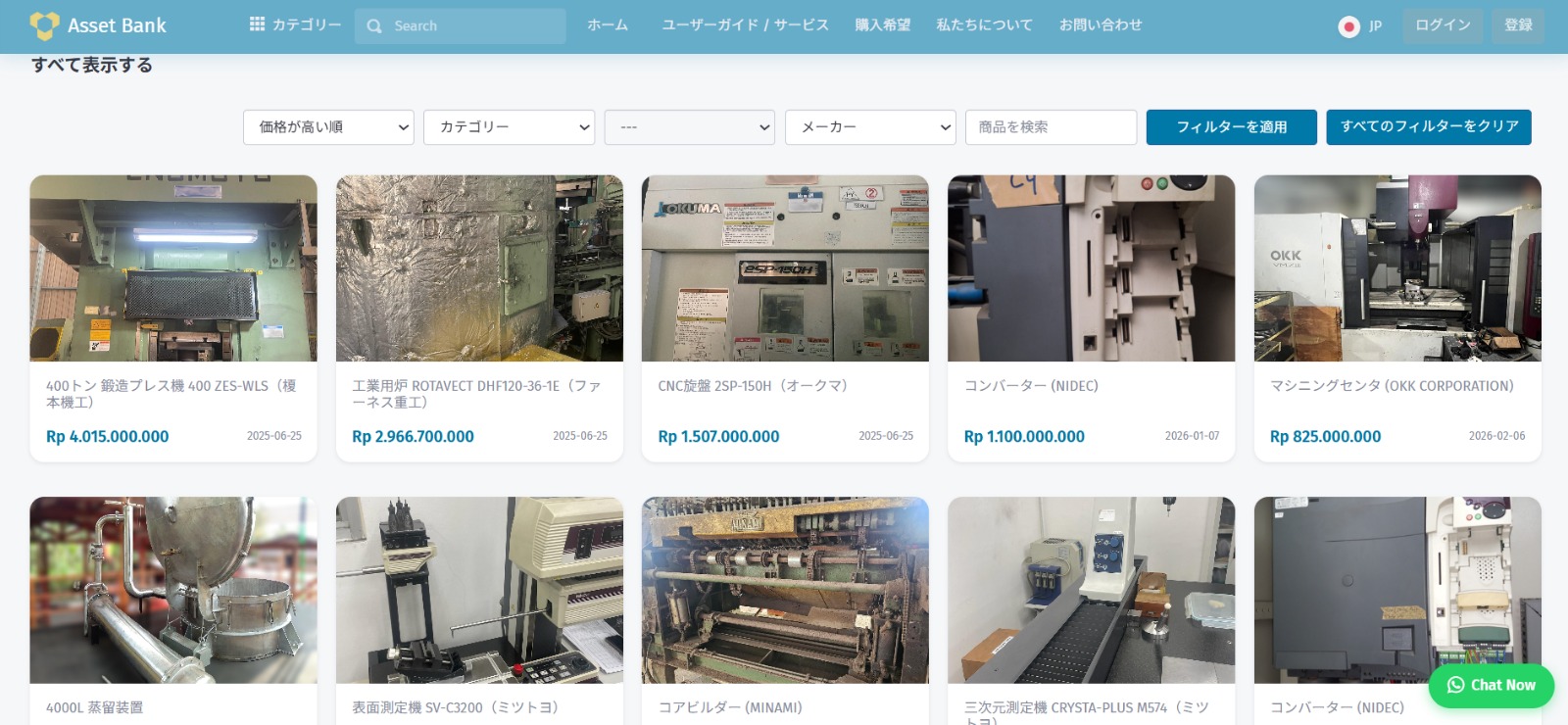中古機械の売買、「どこに相談すればいい?」「売れない・見つからない」。そんな悩みを解決するオンライン仲介プラットフォーム「アセットバンク」では、掲載から売却、引き渡しまでを同社が一貫してサポート。煩雑になりがちなやり取りや交渉も不要です。現在は約150点が掲載されており、幅広い選択肢から比較・検討が可能。さらに、国外へのアプローチできる点も大きな強みです。